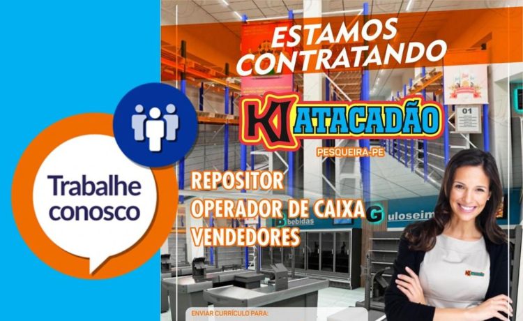 VAGAS DE EMPREGO. Ki-Atacadão, em Pesqueira, abre vagas para Repositor, Operador de Caixa e Vendedores. Grande oportunidade. Mande seu currículo agora mesmo!