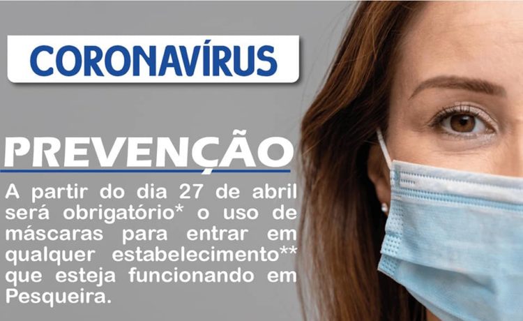 A partir de segunda-feira dia 27 o uso de máscara será obrigatório na nossa cidade Pesqueira. A Prefeitura de Pesqueira informa que a partir do dia 27 de abril será obrigatório o uso de máscaras para entrar em qualquer estabelecimento público ou privado que esteja funcionando em Pesqueira.