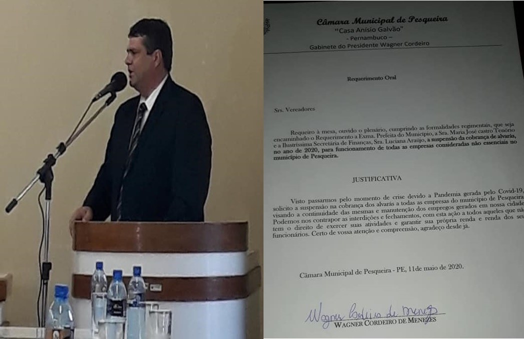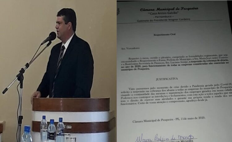 Vereador Wagner Cordeiro pede suspensão na cobrança de alvarás as empresas consideradas não essenciais em Pesqueira*