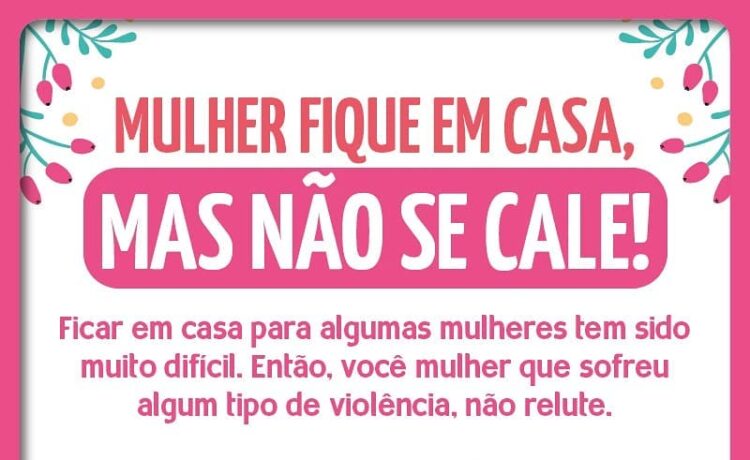 Ficar em casa para algumas mulheres tem sido muito difícil. Então, você mulher que sofreu algum tipo de violência, não relute e não se cale. Denuncie!