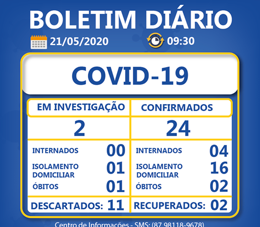 Boletim atualizado dos casos de COVID-19 em Pesqueira. Hoje quinta feira dia 21 de maIO