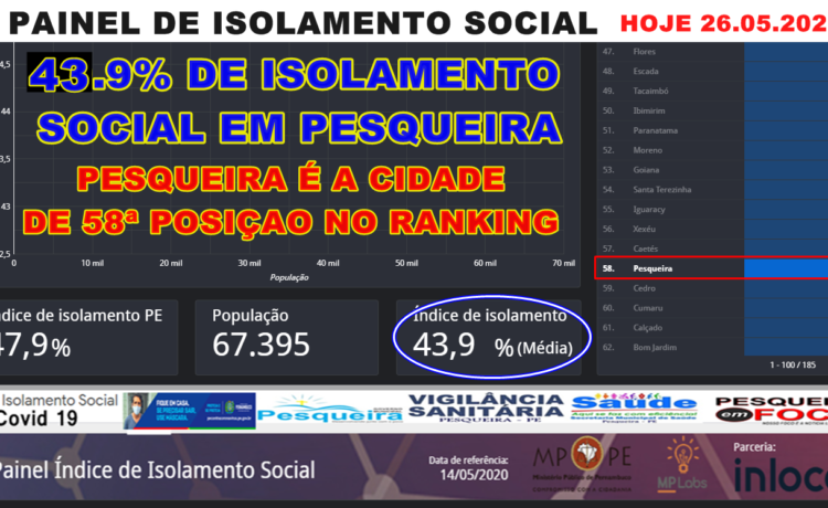 CAI PARA 43.9% O ÍNDICE DE ISOLAMENTO SOCIAL EM PESQUEIRA