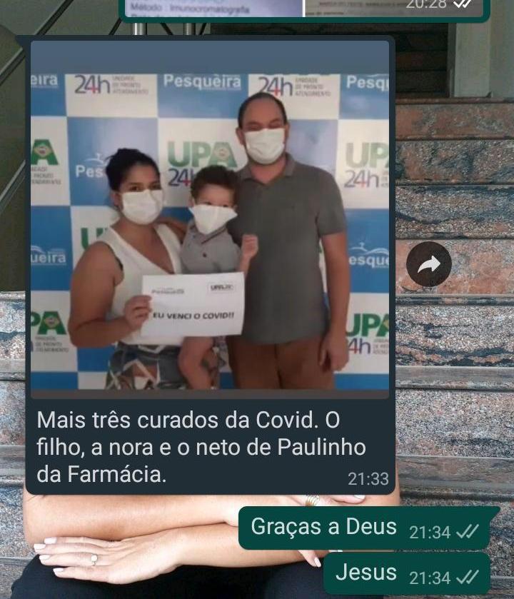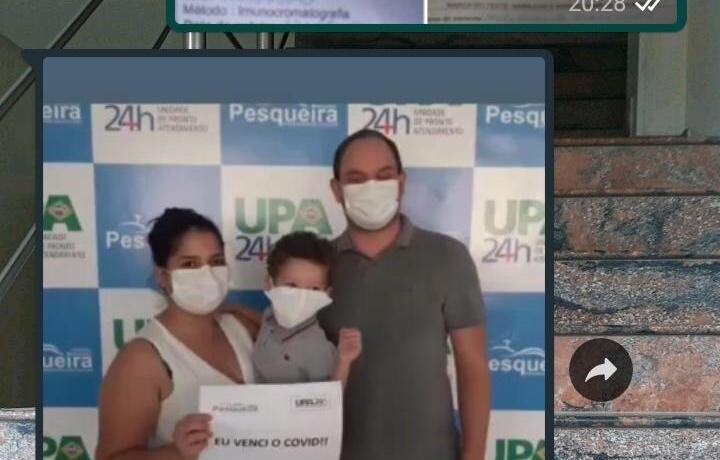 Em meio a tantas notícias negativas que a gente vê todos os dias nas redes sociais, podemos contemplar a última notícia onde vimos em uma foto um cartaz na frente do Banner da UPA Pesqueira, divulgação essa que se espalhou nas redes sociais de um município tendo esta postagens circulada nas redes sociais em nossa cidade, onde temos uma foto de um pai, uma mãe e uma criança estampadas no quadro do banner da UPA Pesqueira, onde os dizeres dizem que essa família foi curada do Coronavírus. Amém!
