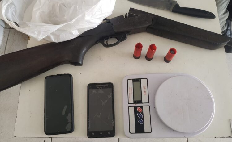 Ainda Segundo informações da Polícia a nossa redação a polícia militar conseguiu apreender uma espingarda de grosso calibre e algumas munições uma balança de precisão que serve para pesar drogas como a tal asubstância xonhecisa como maconha e apreendeu também dois celulares.