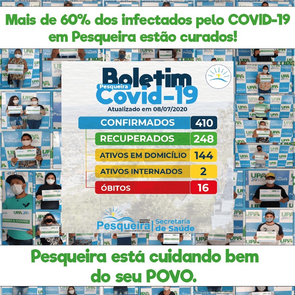 Graças a Deus e o seu cuidado pelo seus filhos, pela fé e esperança dos pacientes infectados serem curados e os cuidados dos profissionais da Saúde , Pesqueira consegue ultrapassar a casa dos 240 CURADOS do coronavirus no Município.