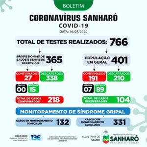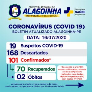 A Secretaria de Saúde confirmou, nesta quinta-feira (16.07), *1.131 novos casos da covid-19*.