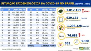 Total de óbitos por covid-19 chegou a 76.688 no país.