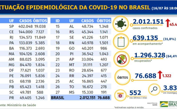 ? *Brasil supera marca de 2 milhões de casos confirmados do novo coronavírus*