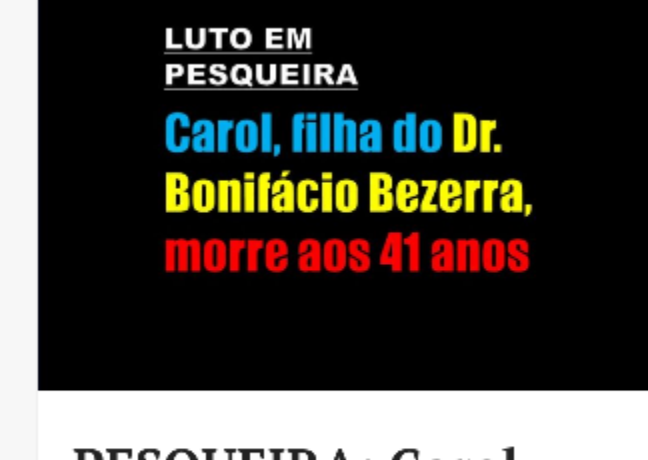 PESQUEIRA: Carol, filha de Dr. Bonifácio Bezerra, morre aos 41 anos. Não foi Covid-19