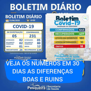 Em 30 dias tivemos um aumento enorme nos casos da covid 19 aqui no Município segundo os boletins da SMS. Pois o dia 23 de Junho nos tinhas os seguintes números: