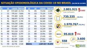 ‪Casos passam de 2,8 milhões (sem contar a subnotificação). 51 mil novos casos foram notificados nesta terça-feira (04/08).