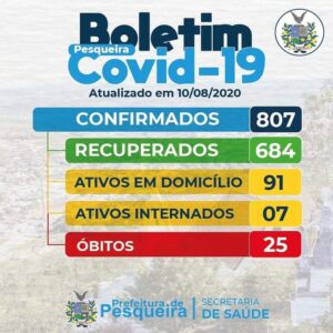 Boletim atualizado e corrigido dos casos de COVID-19 em Pesqueira.
