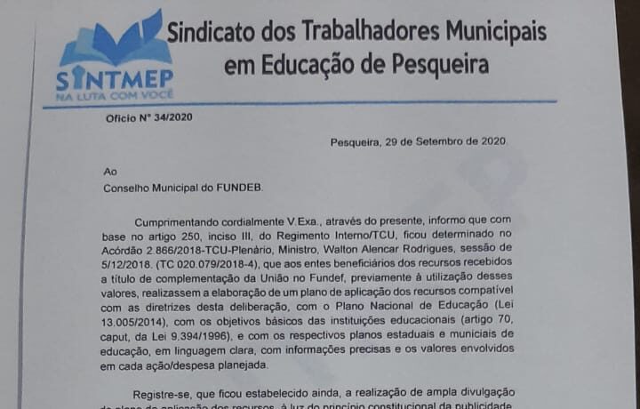 O SINTMEP PERGUNTA .CADÊ O PLANO DE APLICAÇÃO E O EXTRATO DOS RECURSOS DOS PRECATÓRIOS DO FUNDEF DE PESQUEIRA?