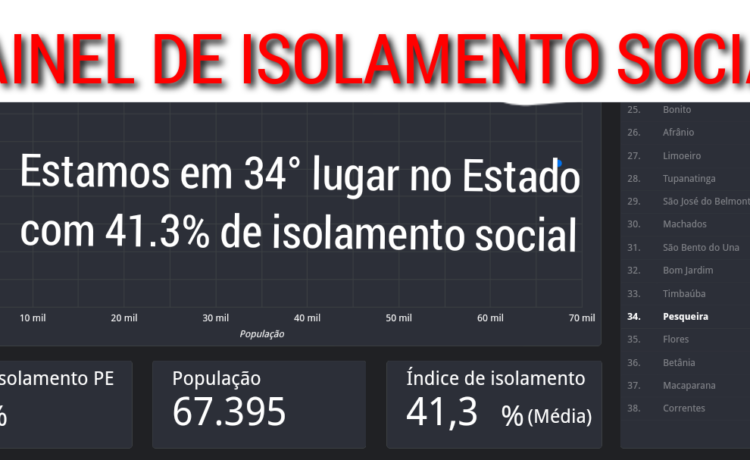 Nossa cidade está em 34 lugar no ranking das 185 cidades e território de Fernando de noronha. Hoje apresenta 41.3 % de isolamento social de acordo com as estáticas dos órgãos competentes de nosso Estado. Já fomos pior nessa questão hoje estamos muito melhor.