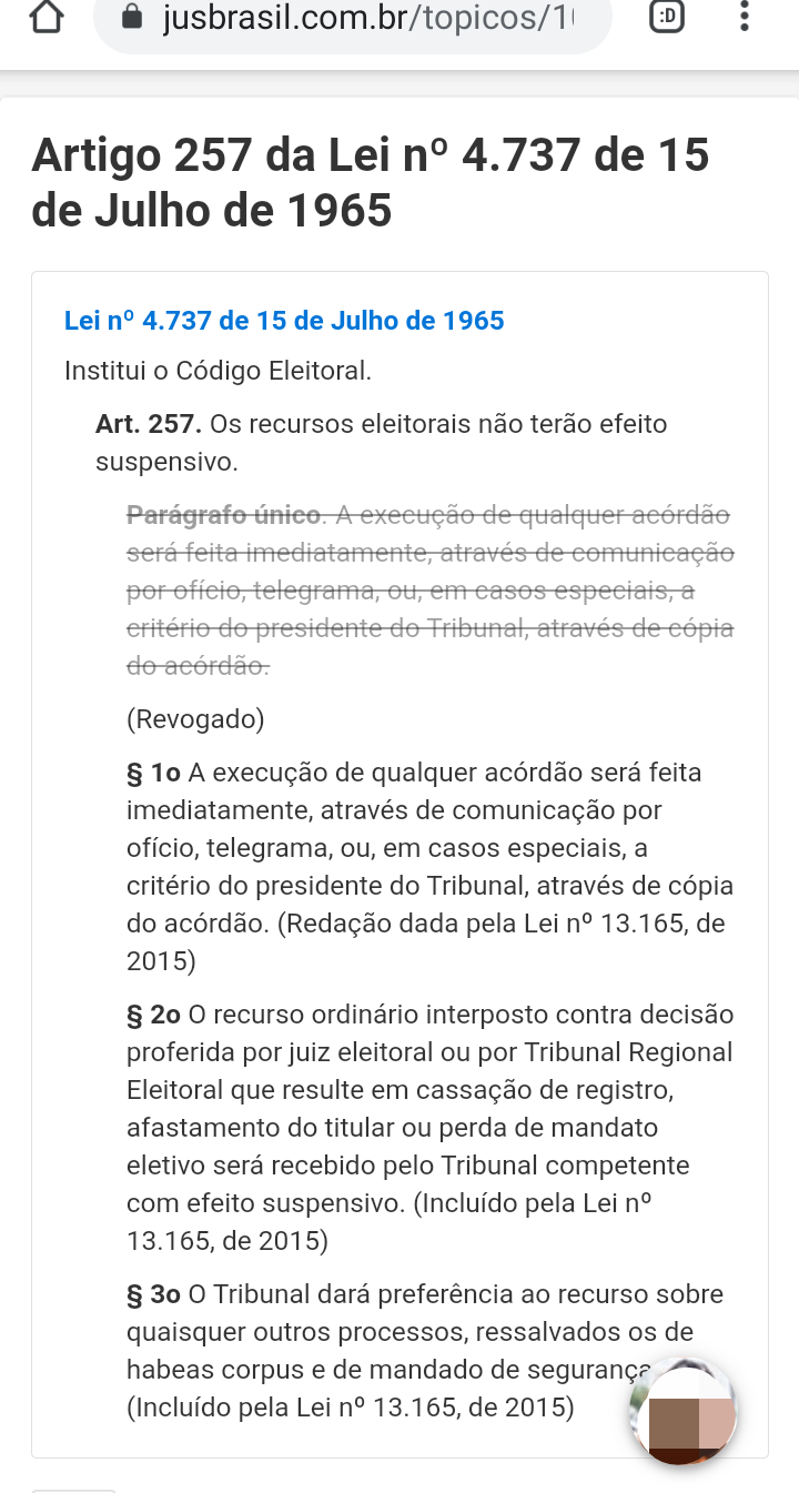 Para o partido, a eficácia suspensiva plena inerente ao recurso decorre da sua própria natureza ordinária. Assim, pede, no mérito, que o Supremo Tribunal Federal dê interpretação conforme a Constituição ao parágrafo 2º do artigo 257 do Código Penal para reconhecer a atribuição do efeito suspensivo ao recurso ordinário eleitoral interposto contra decisão que resulte em cassação de registro, afastamento do titular, perda de mandato eletivo ou decretação de inelegibilidade.