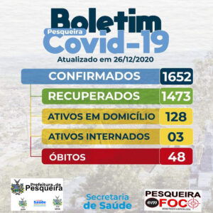 Nossa querida cidade Pesqueira começa a Semana com números altos da contaminação covid 19. Veja abaixo.