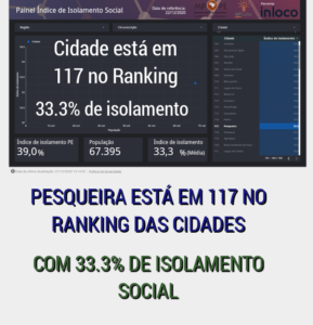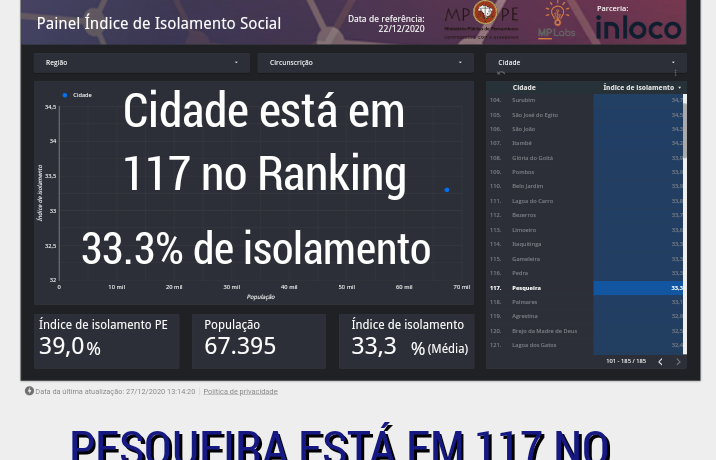 Nossa querida terra do doce, da renda e da graça começa a última semana do ano em 117 lugar no ranking das 184 cidades do estado com um isolamento social de 33.3% de seus munícipes.