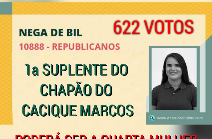 Ela seria a quarta mulher (já temos Bel, Arinete e Rochevânia) agora Nega de Bil seria a quarta vereadora mulher do nosso município a assumir uma cadeira na casa representante do povo.