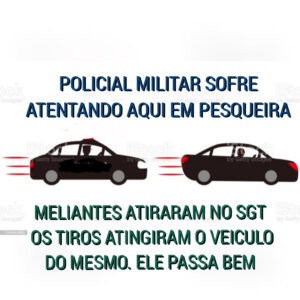 O sargento RRPMPE que era LOTADO na 8a CIPM Pesqueira que reside em Alagoinha DOM MARCELO sofreu uma emboscada de atentado a sua vida na tarde desta segunda feira no caminho de mutuca a Pesqueira quando segundo informações dão conta de que quatro elementos em um veículo seguiram Seu carro e em dado momento realizaram varios disparos de arma de fogo de grosso calibre no seu veículo durante parte do trajeto que ele seguia