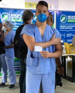 O profissional da Saúde Ricardo Henrique Leite dos Santos, Pesqueirense com 26 anos de idade, Enfermeiro formado pela Unifavip Caruaru, atualmente atuando na linha de frente contra o enfrentamento da COVID 19 em Recife no Hospital Provisório do Recife 1- Aurora, hoje também fazendo parte do quadro de funcionários na UPA Pesqueira na Emergência COVID , hoje Terça-Feira dia 19.01.2021 teve o privilégio em ser o Primeiro Enfermeiro da Unidade Aurora Recife a ser Imunizado com a 1 dose da vacina.