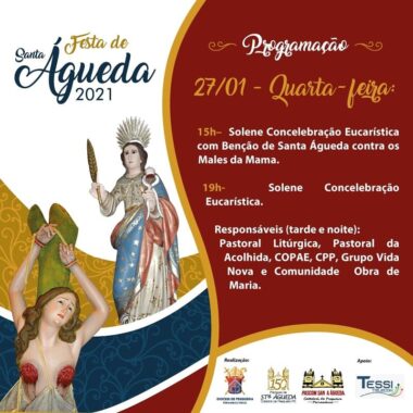 Neste ano atípico de pandemia da COVID-19 teremos duas Celebrações Eucarísticas por dia. Uma no horário da tarde e outra no horário da noite. A Bênção contra os males do Câncer acontecerá ao final da Santa Missa da tarde. A participação se dará mediante agendamento prévio na secretaria da paróquia via contato telefônico. No dia de Santa Águeda, 05 de fevereiro, não teremos a tradicional procissão. A imagem percorrerá em carro aberto as principais ruas da cidade de Pesqueira. Para a quermesse, essa, será realizada apenas três noites e unicamente em formato drive-thru.