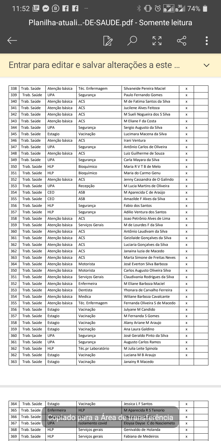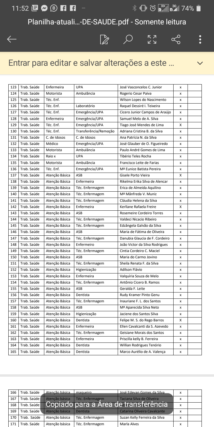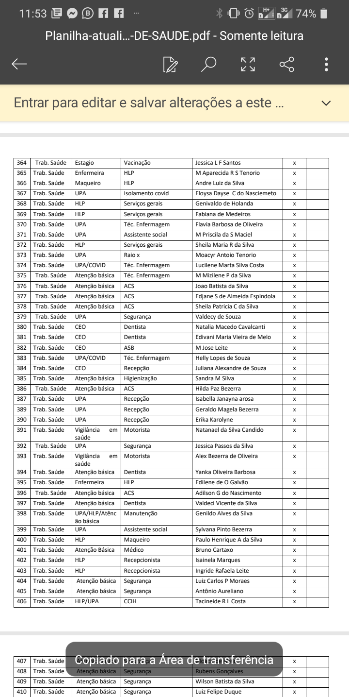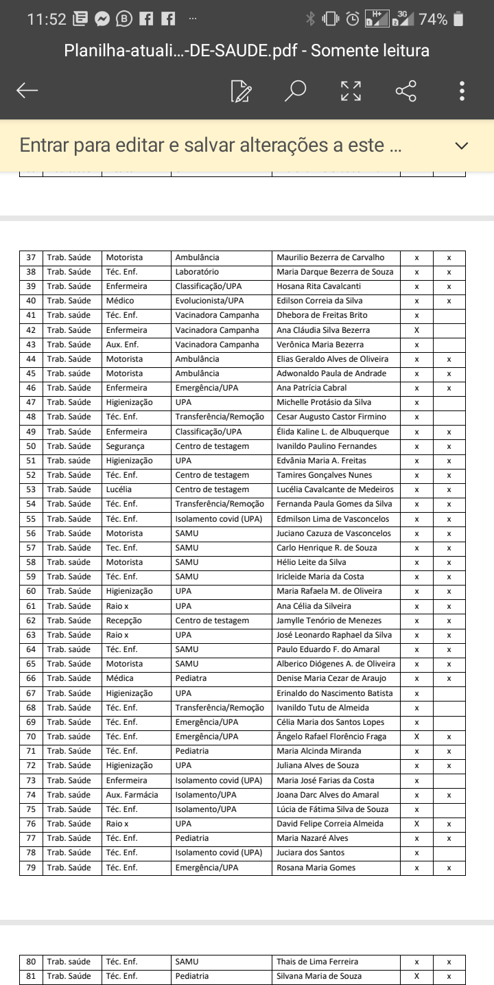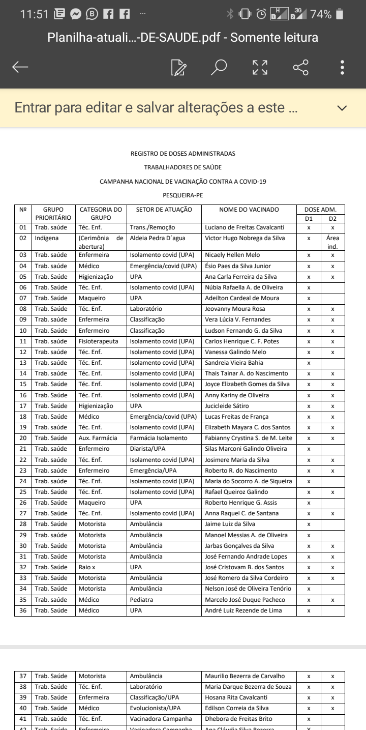 CONFIRA AQUI A RELAÇAO DAS PESSOAS DA SAUDE VACINADAS AQUI EM PESQUEIRA