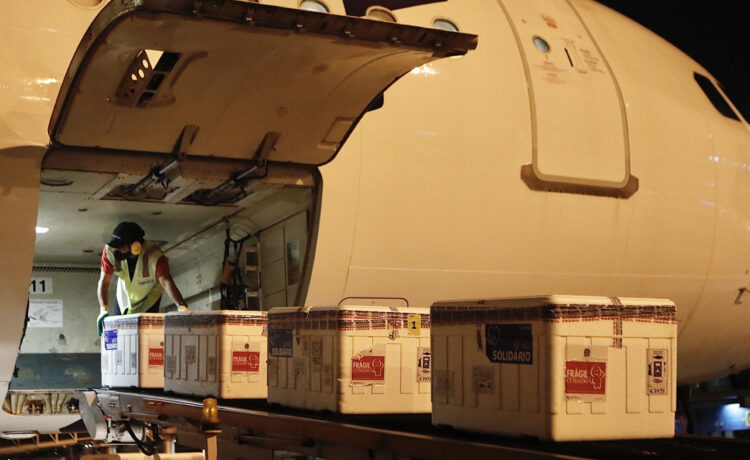 Pernambuco recebeu, na noite desta quarta-feira (24.02), mais 48 mil unidades da vacina Sinovac/Butantan, o que possibilitará avançar na proteção dos trabalhadores de saúde em ambas as doses, beneficiando todo o território pernambucano. Com os imunizantes que chegaram ao Aeroporto Internacional dos Guararapes às 20h, Pernambuco finalizou o dia com mais 130 mil doses de vacinas contra a Covid-19. Pela manhã, já haviam chegado 82 mil unidades da farmacêutica AstraZeneca/Universidade de Oxford, desenvolvidas em parceria com a Fundação Oswaldo Cruz (Fiocruz) e produzidas pelo Instituto Serum, na Índia, que garantirão a primeira dose para idosos entre 80 e 84 anos de idade, em todos os municípios do Estado.