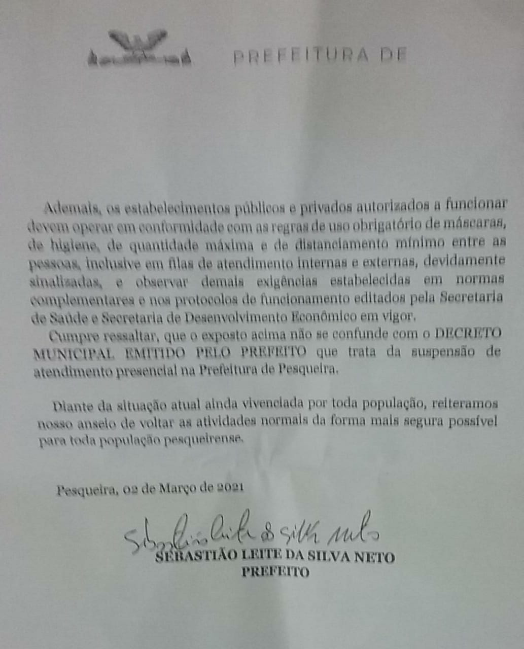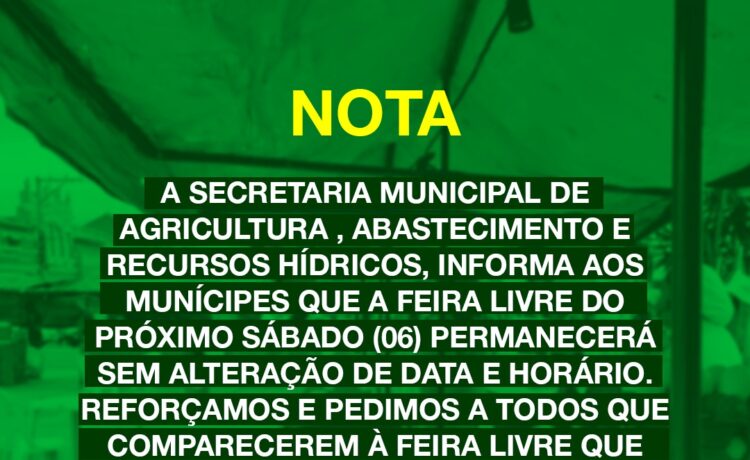 Porém, a feira acontecerá normalmente, de acordo com a nota publicada nas redes sociais da Prefeitura Municipal de Pesqueira.