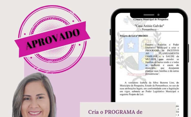 Nesta terça-feira foi apresentado por mim um Projeto de Lei que cria no âmbito municipal o Programa de Incentivo ao Planejamento Familiar e Saúde da Mulher. Esse programa será coordenado pela Coordenadoria da Mulher em parceria com a rede e executado pela Secretaria Municipal de Saúde de Pesqueira. O programa vem fortalecer o trabalho que é executado pela atenção básica do nosso município e fazer com que as mulheres de fato tenham seus direitos garantidos.