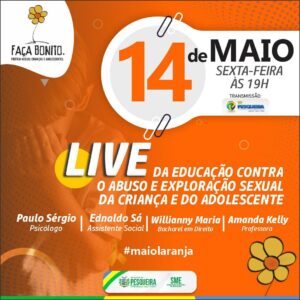 Maio é considerado o mês de luta contra a exploração e abuso sexual de crianças e adolescentes. Órgãos da sociedade civil e do governo estão empenhados para levar orientação à população a fim de conscientizá-la sobre como combater estes atos criminosos em todo o território municipal. A Secretaria de Educação realizará uma live, na noite desta sexta-feira (14), sobre o tema do abuso e exploração sexual de crianças e adolescentes.