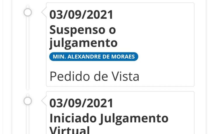 No dia 20 de Agosto, também houve um pedido de vista. O pedido foi feito pelo ministro Luís Roberto Barroso, o que suspendeu o julgamento, sendo este remarcado para a data de hoje.