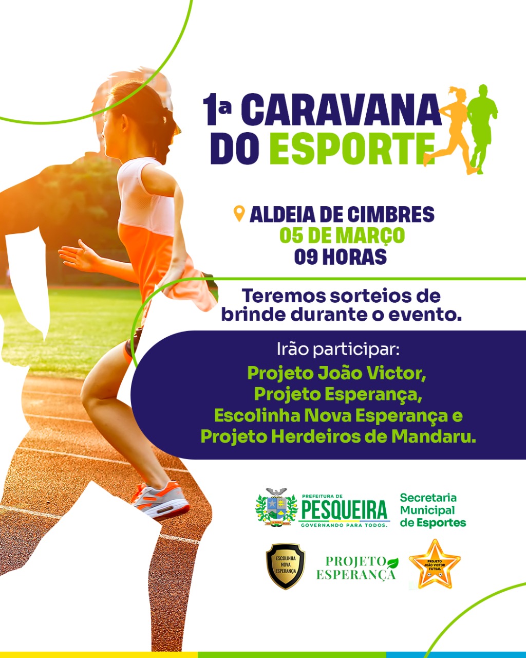 Com o objetivo de levar atividades esportivas para zona rural do nosso município, o governo municipal através da secretaria de Esportes e Juventude lança a Caravana do Esporte e no próximo sábado já teremos a primeira atividade que será na aldeia Vila de Cimbres.