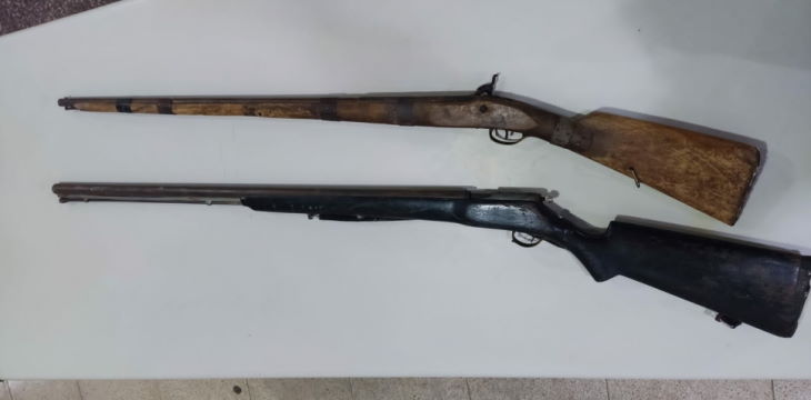 Diante das informações, uma guarnição foi ao local indicado e de fato as duas espingardas estavam lá. Assim, foram apreendidas e apresentadas na delegacia de polícia.