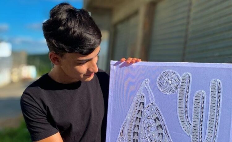 O jovem artesão reproduz artes modernistas e gravuras utilizando a renda renascença como matéria-prima.