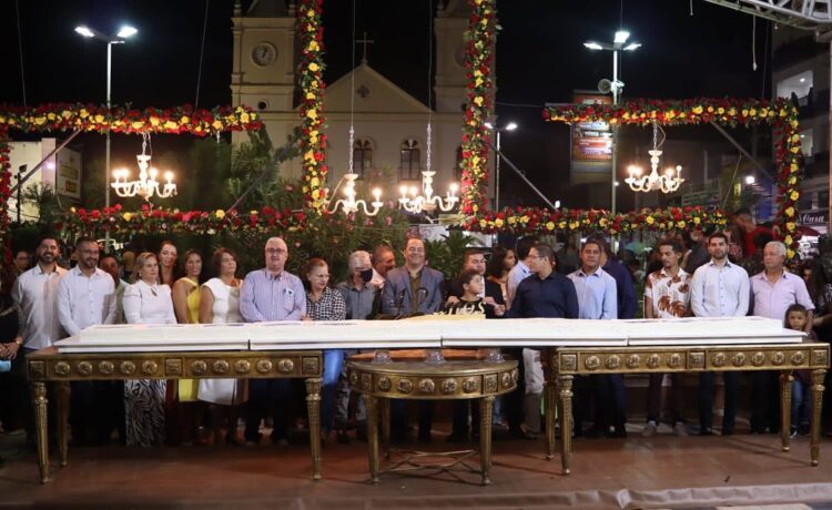 Começos o dia com a cerimônia de hasteamento das bandeiras, e já na parte da noite, tivemos a Santa Missa e o corte do bolo.