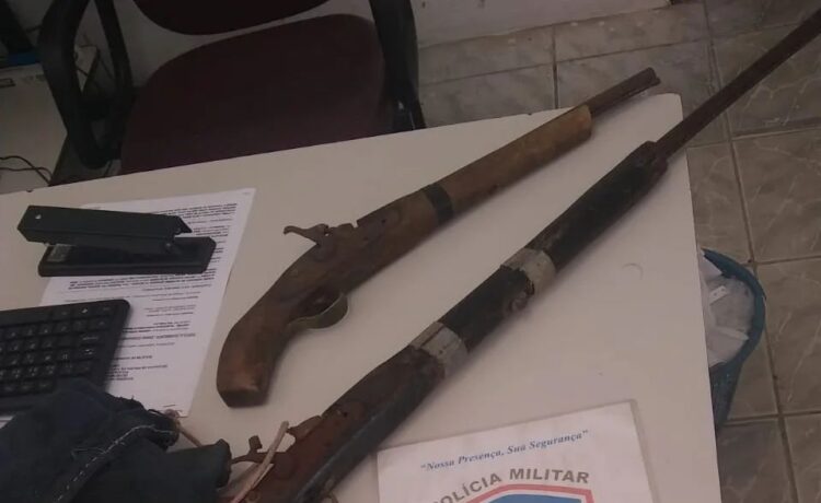 GT da cidade de Alagoinha apreende espingarda e uma garrucha artesanais tipo soca-soca