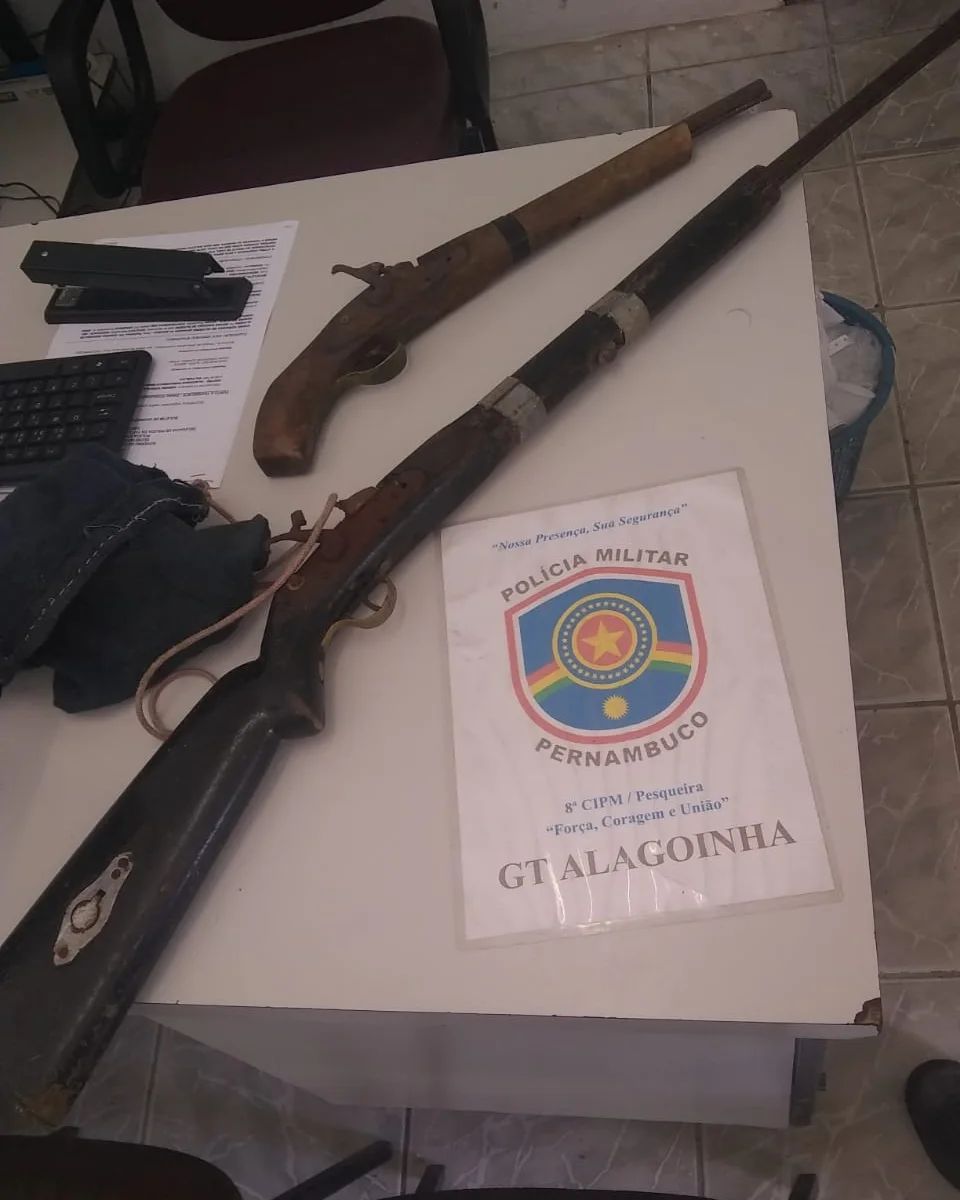 Como não foi possível localizar o suspeito, as armas foram apreendidas e entregues à DP de Alagoinha, onde foi instaurado Inquérito por portaria.
