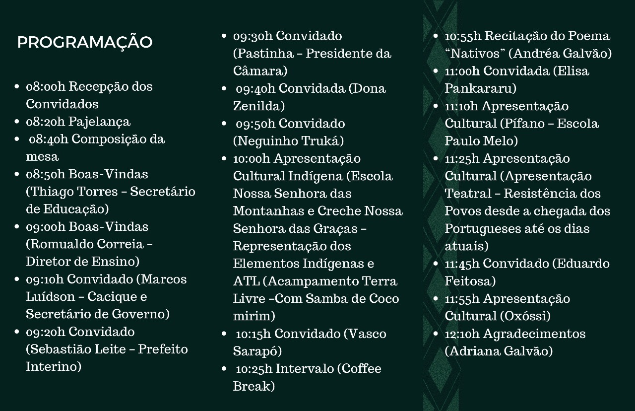 CONFIRA A PROGRAMAÇÃO DA SEMANA DA CONSCIÊNCIA INDÍGENA 2022