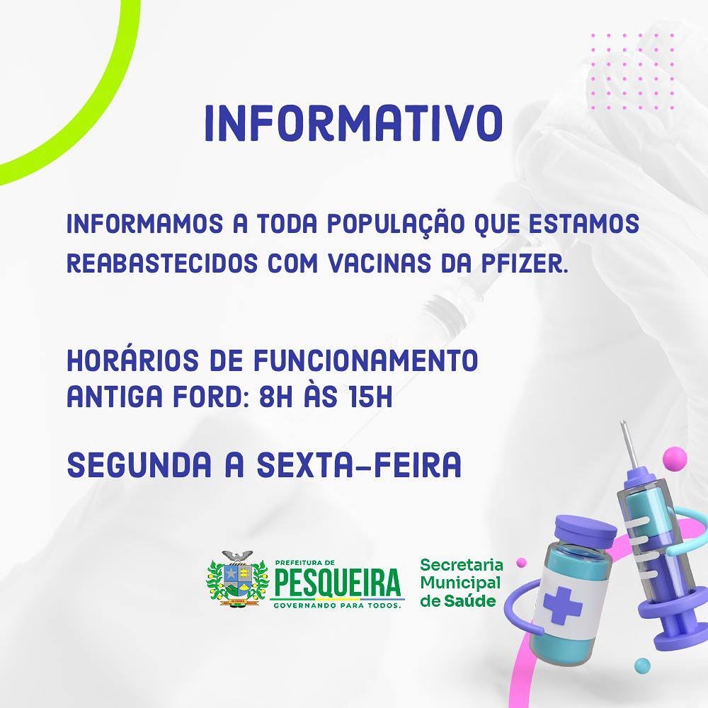 Já estamos reabastecidos com vacinas Pfizer.