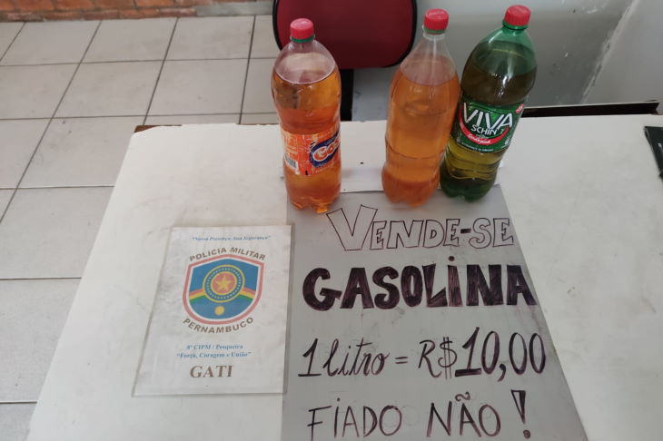 Uma mulher foi levada à delegacia daqui de Pesqueira nesta segunda-feira (06) por vender gasolina através de um cartaz no valor de R$ 10,00 o litro.