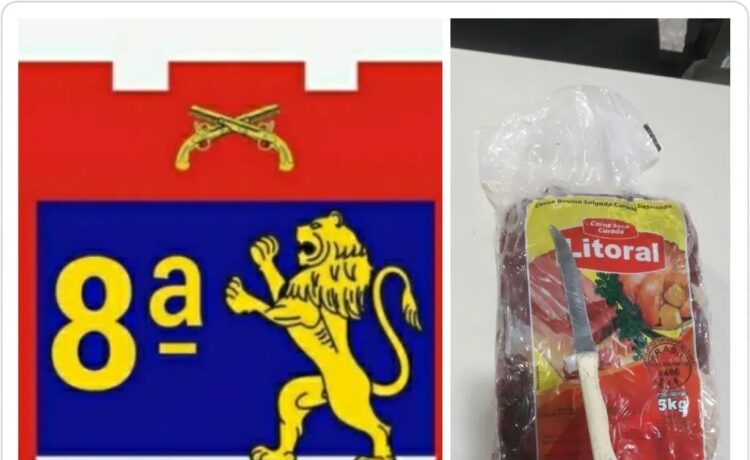 Os policiais militares realizaram diligências e conseguiram encontrar o mesmo com o produto pacote de charque contendo 5kg e uma faca tipo serra de mesa dentro de uma mochila.