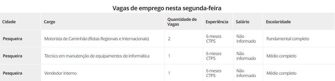 A Agência do Trabalho tem, nesta segunda-feira (5), 205 vagas de emprego disponíveis. Do total de ofertas, seis são exclusivas para pessoas com deficiência. Os postos de trabalho foram oferecidos através de unidades da agência em 16 municípios pernambucanos, segundo a Secretaria de Trabalho, Emprego e Qualificação (Seteq).