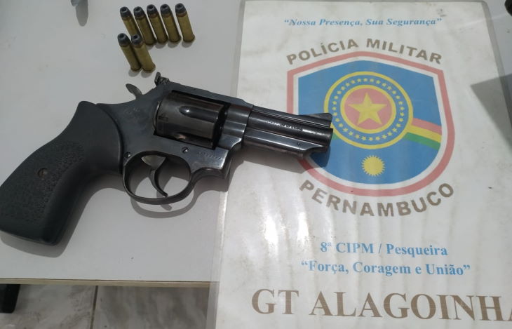 Equipes da Polícia Militar apreenderam um revólver calibre 38 municiado após denúncia sobre ameaças de morte. A apreensão ocorreu por volta das 14h30 de terça-feira, 13, na cidade de Alagoinha.