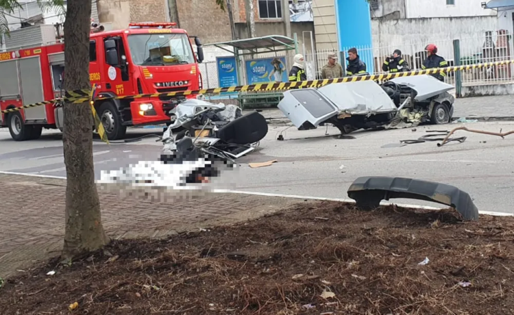 Imagens que circulam nas redes sociais mostram o carro passando em alta velocidade, batendo numa vitrine e se despedaçando logo em seguida. Um dos ocupantes morreu na hora. Ele foi identificado como Elton Jonatan da Silva, de 23 anos.