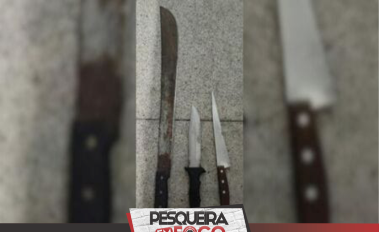Segundo a PM, ao entrar na casa do suspeito, os agentes encontraram uma faca na cama, coberta por um lençol, e outras duas facas menores dentro do carro.