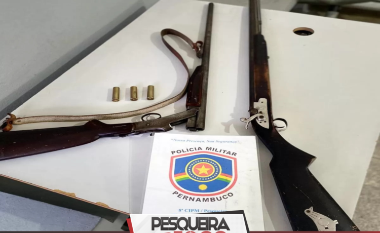 O policiamento da cidade de Pesqueira apreendeu duas espingardas e três cartuchos na tarde desta terça-feira, 2.