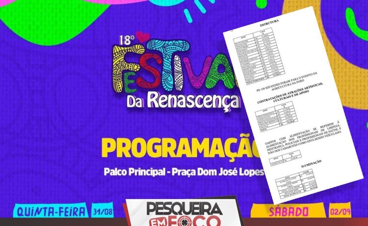 A Prefeitura de Pesqueira divulgou nesta segunda-feira (11) os gastos aplicados na estrutura do Festival da Renascença 2023. As informações podem ser encontradas de forma pública, em planilhas, que serão disponibilizadas ao fim desta matéria.