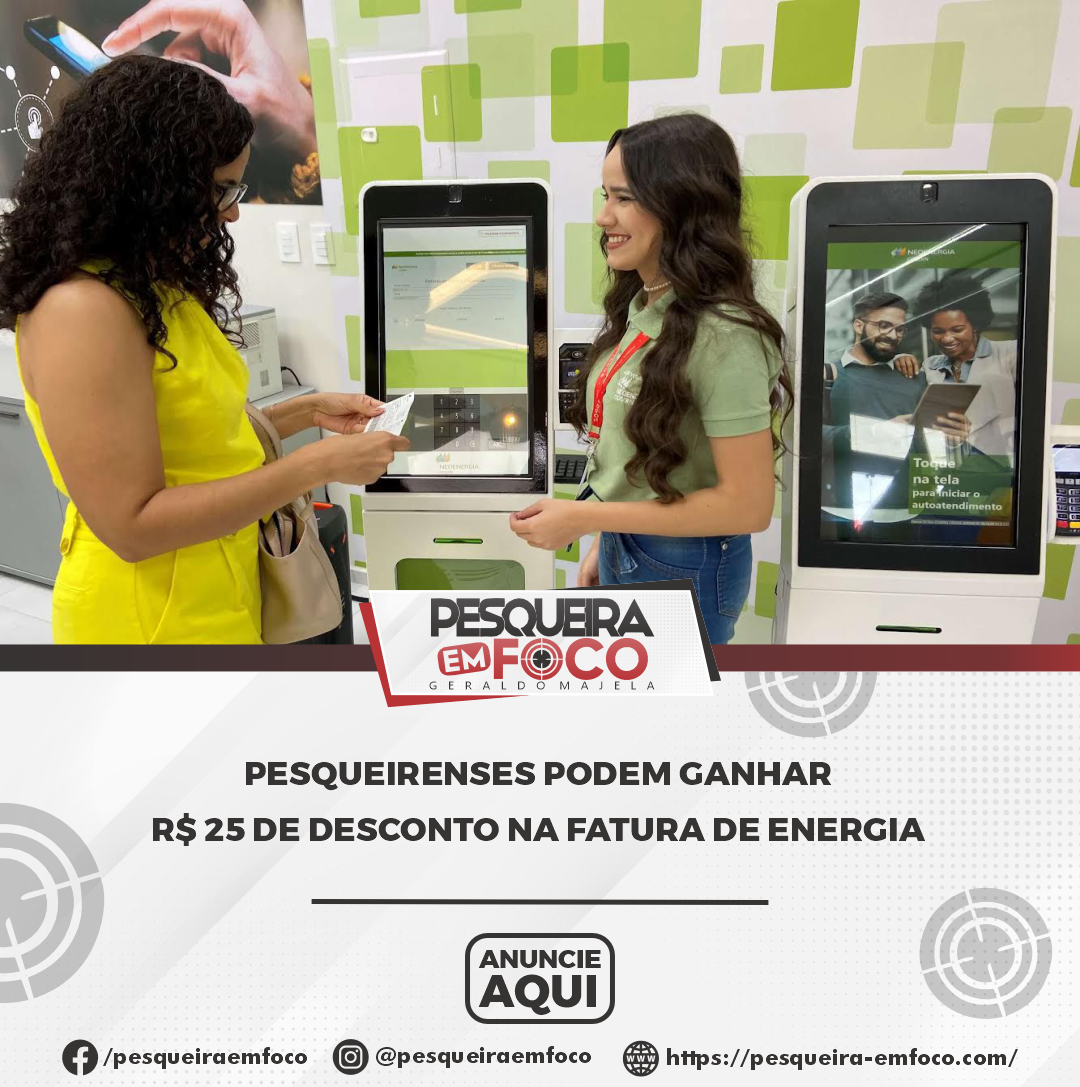 Os moradores da cidade de Pesqueira podem ganhar até R$ 25 de desconto na fatura de energia. A ação faz parte das comemorações da Neoenergia em função do mês do cliente, celebrado em setembro. Para receber o benefício, os pesqueirenses precisam realizar o pagamento da conta por meio do APP RecargaPay, cujo download está disponível para Android e IOS. A ação é válida até o dia 31 de outubro.