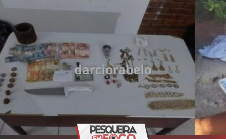Com as diligências em curso, foi possível capturar o segundo envolvido no furto, que estava de posse de outra parte dos objetos furtados e portava uma faca peixeira. Quando questionado, ele informou ser foragido do sistema prisional de Canhotinho e que havia rompido a tornozeleira eletrônica, tendo em seu desfavor um mandado de prisão de N°: com validade até 28.11.2039. Ao ser realizada a busca pessoal nas mulheres por uma policial feminina, foi encontrada mais uma pedra de crack com a dona do estabelecimento.