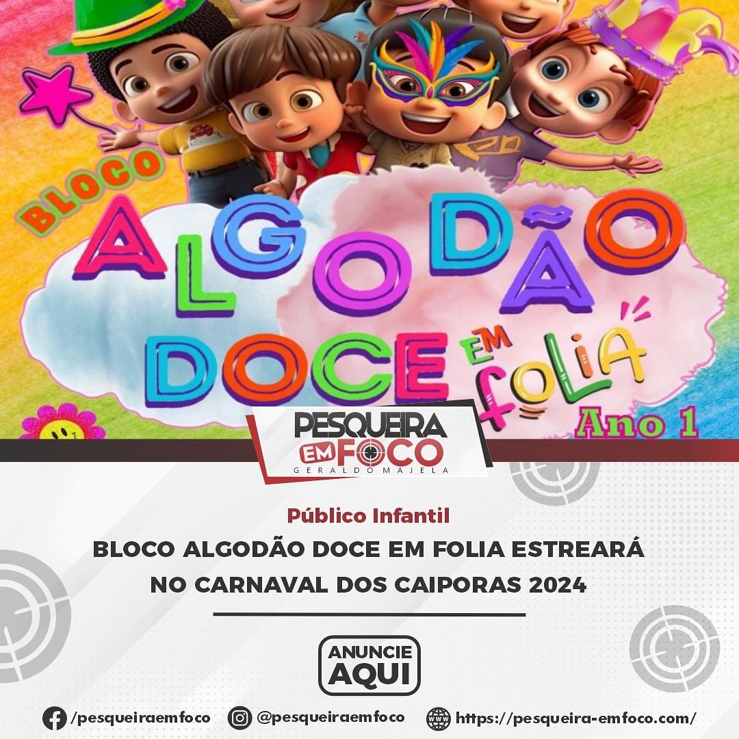 Voltado para o público infantil, especialmente às crianças carentes, o recém-criado bloco carnavalesco Algodão Doce em Folia irá às ruas do município para levar muita alegria, descontração e a irreverência típica da festa de Momo.